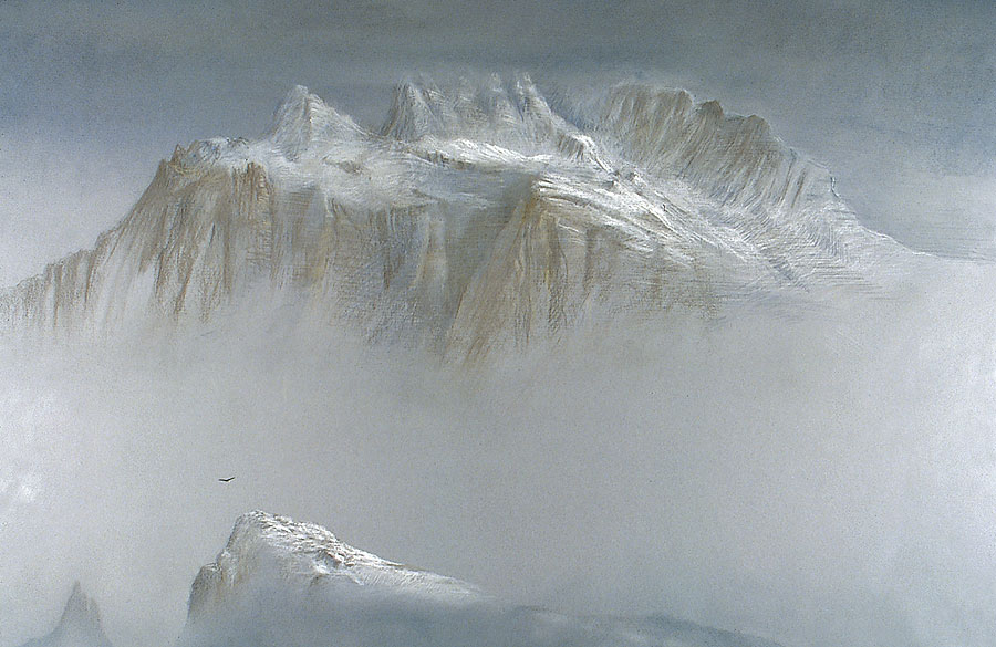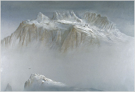 "Tre Cime di Lavaredo", die berühmten Drei Zinnen in den Sextener Dolomiten, sind im Sommer von Touristen überlaufen. Bei schlechtem Wetter und im Herbst aber verlieren sie ihren Ansichtskartencharakter. Die Berggruppe erscheint als geheimnisvolle, unzugängliche Welt jenseits der Realität.